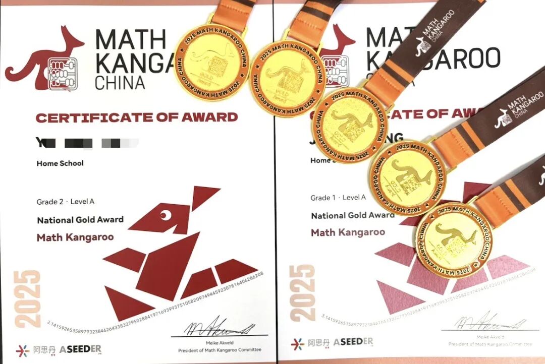 全球奖项🔹 Math Kangaroo成就奖,满分同学将获该奖项中国区奖项🔹超级金奖Top Gold:排名前5%🔹金奖Gold Award:排名前15%🔹银奖Silver Award:排名前25%🔹铜奖Bronze Award:排名前40%🔹数学技能奖Proficiency Award:各省/直辖市/自治区/特别行政区(除全国奖项之外)前25%*每个年级单独评奖,满分奖的同学也将同时获得奖牌