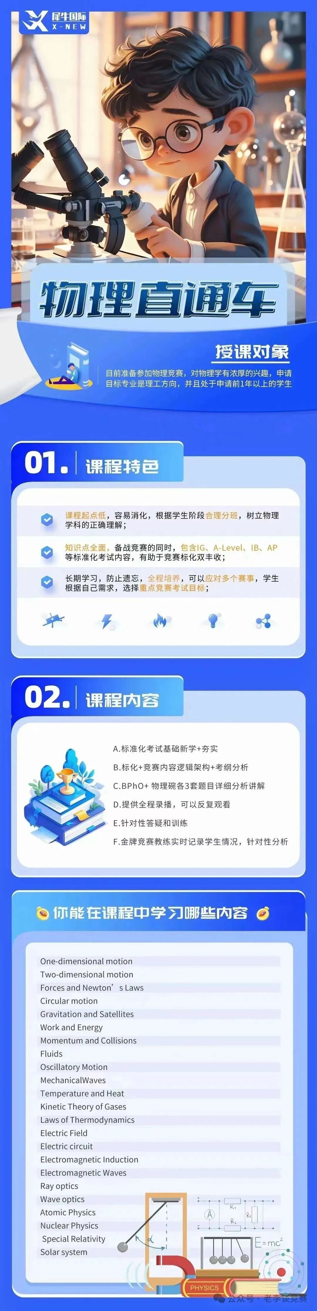 👉最后一个月高效冲刺:先快速刷1 - 2套真题,全面排查自己的知识漏洞,明确哪些模块掌握得不够扎实。然后针对存在较大问题的专题进行专项练习,强化知识点的理解与吸收。遵循“抓重放轻”的原则展开训练,确保能在有限的时间内实现分数的有效提升。考前一个月,平均每周安排2 - 3套题进行模拟演练,严格按照45分钟的考试时间执行,让自己熟悉考试形式和题目难度,更好地适应考试节奏,学会合理分配答题时间。 犀牛国际教育开设物理竞赛直通车,BPhO全程班,物理碗全程班等等多种类型的课程。