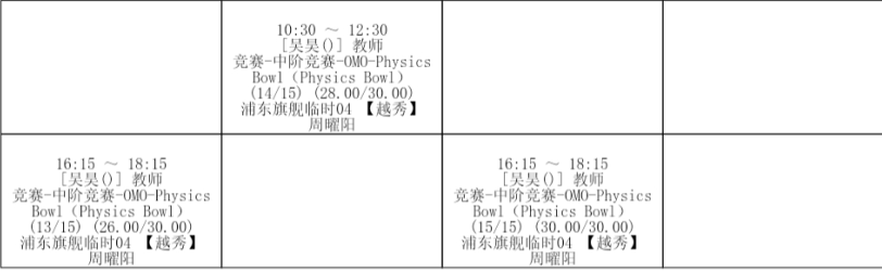 具体:周六10:30-12:30+2.1、2.22、3.8、3.15周日16:15-18:15,详见课表