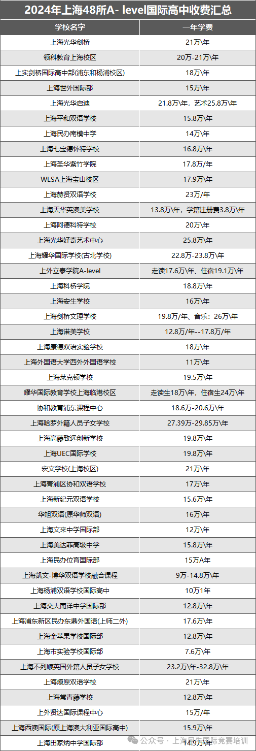 ALevel脱产一年课程一般在20左右,学生可以在一年内完成A-Level课程,拿到AS和A2的成绩。相比于国际学校3年60w的收费,ALEVEL全日制课程更适合中产家庭,