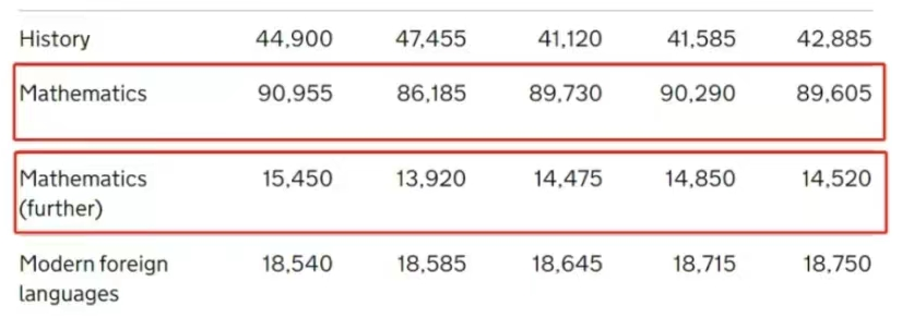 在英国许多本科专业中,数学都是一项重要的学科基础。根据Ofqual新公布的数据来看,虽然2022年学习A-Level数学的人数相比去年有一定下降,但仍是最受欢迎的学科之一,学习A-Level数学的学生人数是物理、化学和生物等科目的两倍左右。