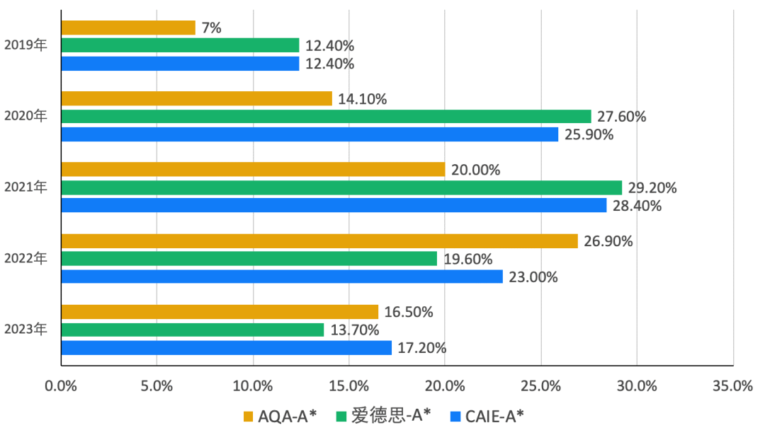 从近五年三大考试局ALevel化学的A*率对比中可以看出: