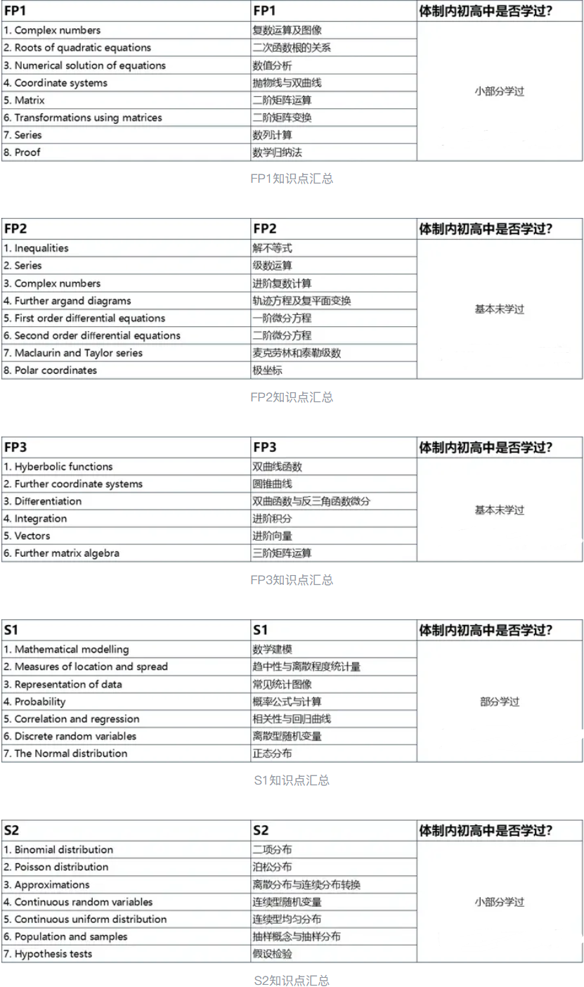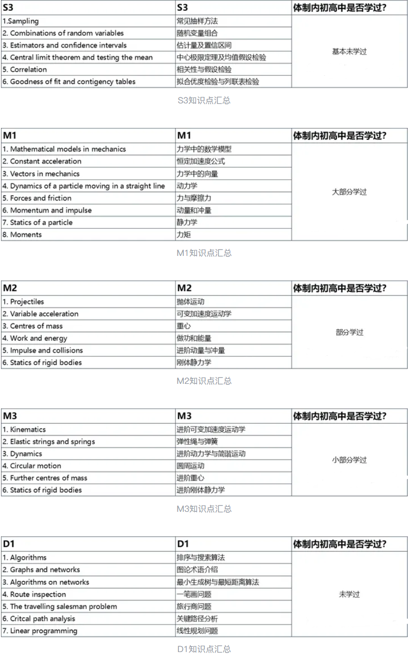 分别为基础数学(Mathematics)、进阶数学(Further Mathematics)和纯数学(Pure Mathematics),