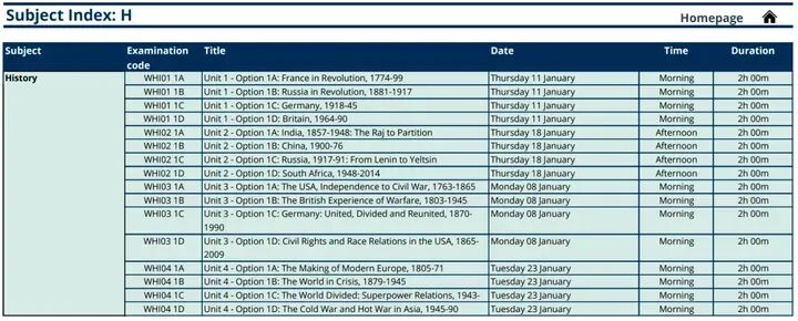 1月A-Level考试时间表