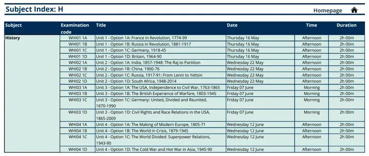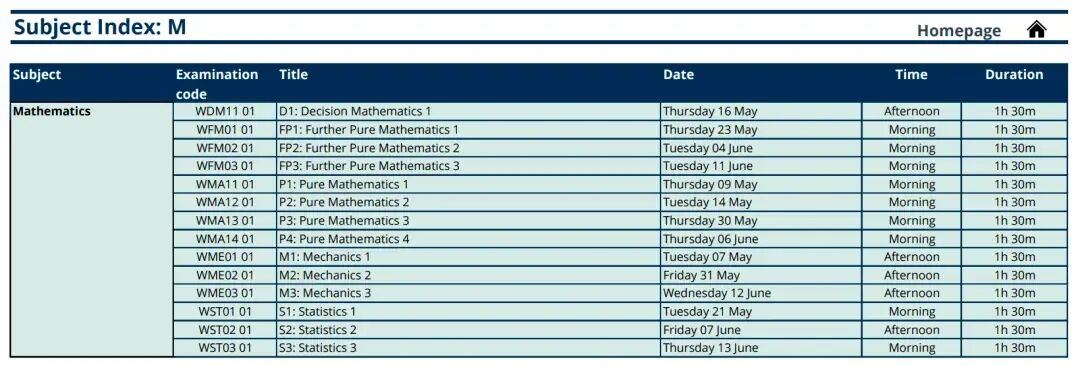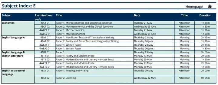 5月A-Level考试时间表