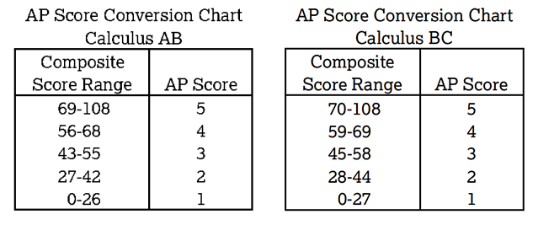 **AP微积分AB原始分总分69-108的转为AP 5分(也即满分)