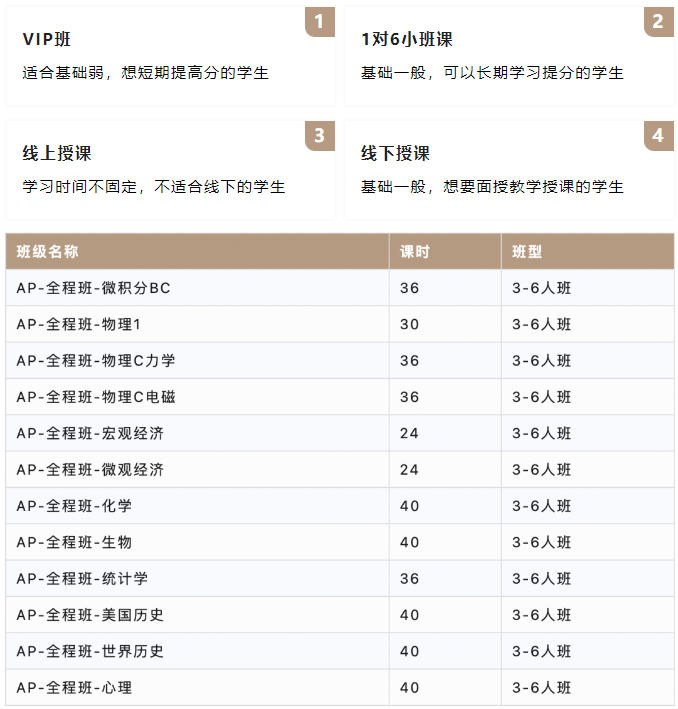 为帮助广大准留学生解决AP选科规划、留学申请等相关疑问,我们特推出AP常规课程班,提供AP学科强辅导,助力各位高中学子们,在这些高难度但又缺乏备考经验的考试争锋中,勇夺佳绩。