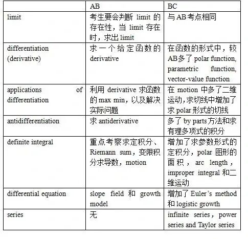 △微积分AB与微积分BC的区别(图片来源网络)