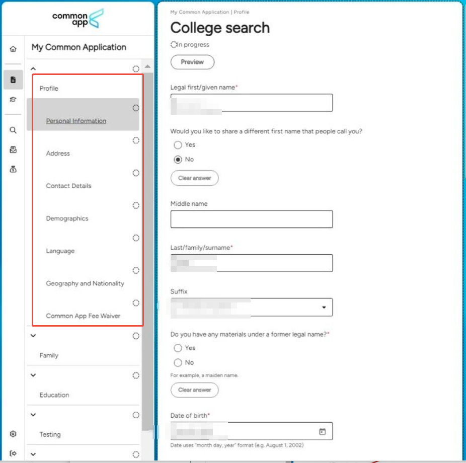 My Common App表格填写仍然是7个部分,没有发生变化,主表格的所有内容都会共享给每一所你申请的大学。