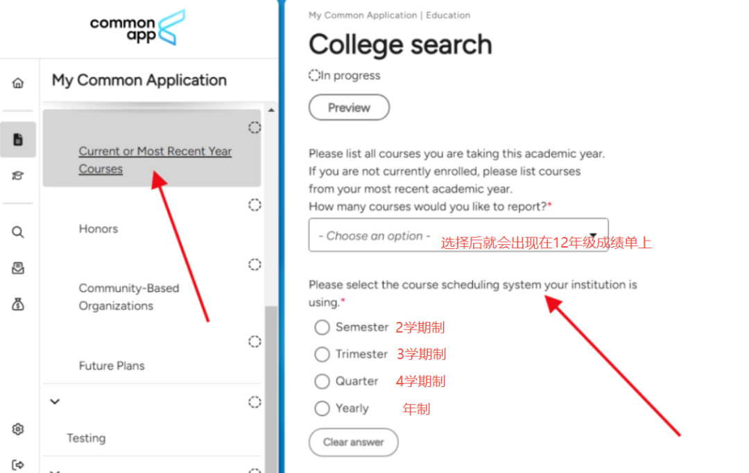 ▶ 成绩部分:需要和升学顾问确定GPA的算法,以及你的排名。目前大部分高中都不提供排名,如果没有就选“none”。