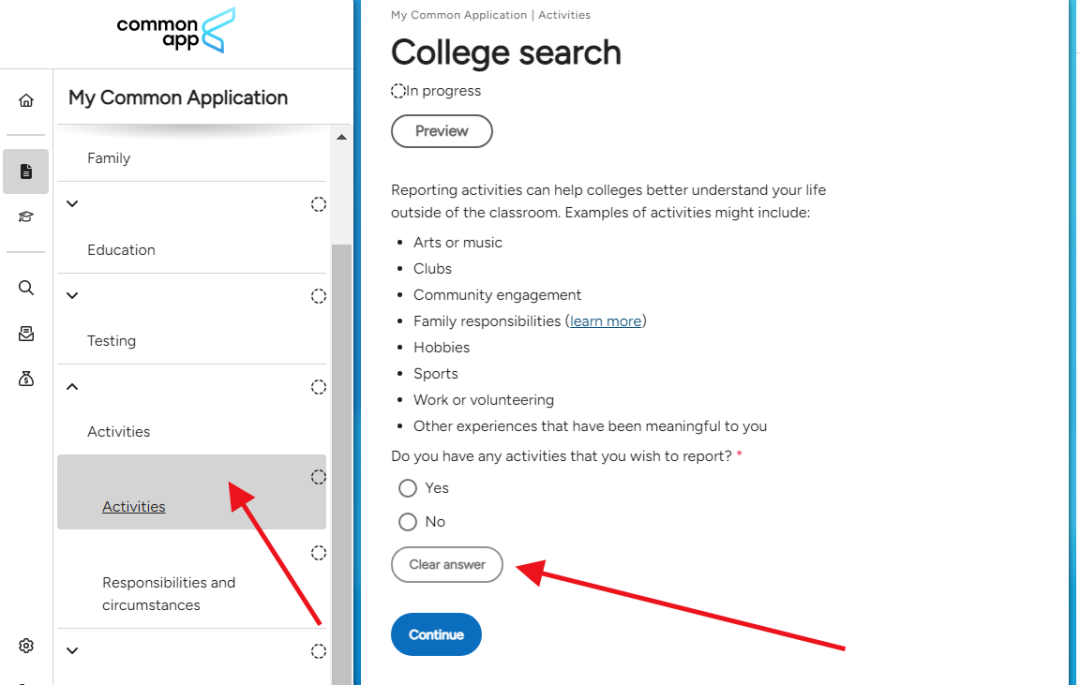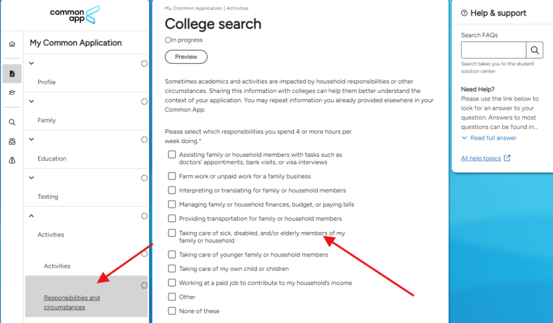 Activities选项卡下新增一项必填项,需要根据实际情况选择Responsibilities and circumstances(责任与情况),帮助大学更好地了解你的课外生活,这一部分可以多选。