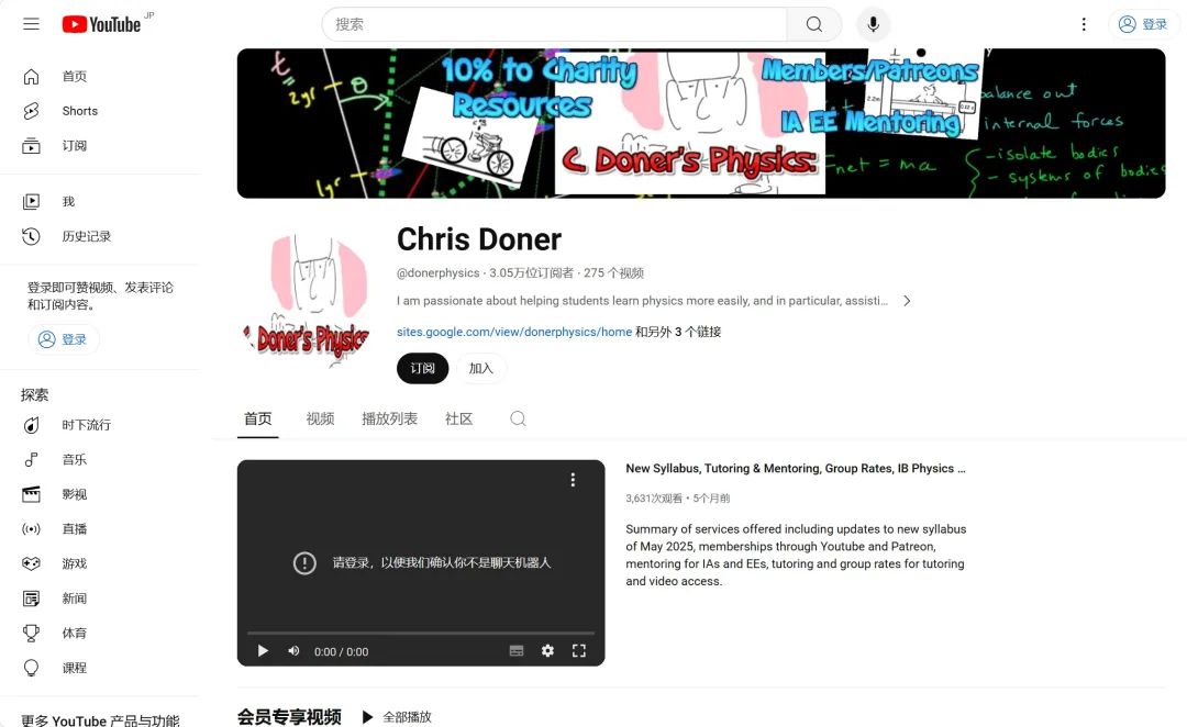 这是一位Youtube的博主创建的视频账号,来自IB物理考官Chris Doner老师的分享,内容丰富有趣而且非常细致易懂,适合即将升入DP1的同学在暑期进行预学,也适合基础薄弱、即将进入一轮复习的同学。
