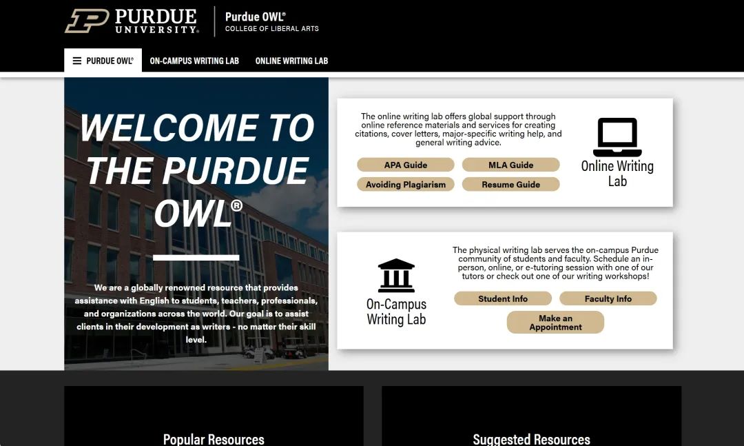 Purdue OWL是普渡大学的一个关于英文写作的网站,基础写作、学术写作、写作技巧都有系统的讲解,可以帮助大家在论文写作中使用专业的表达和语法,提高表述能力。