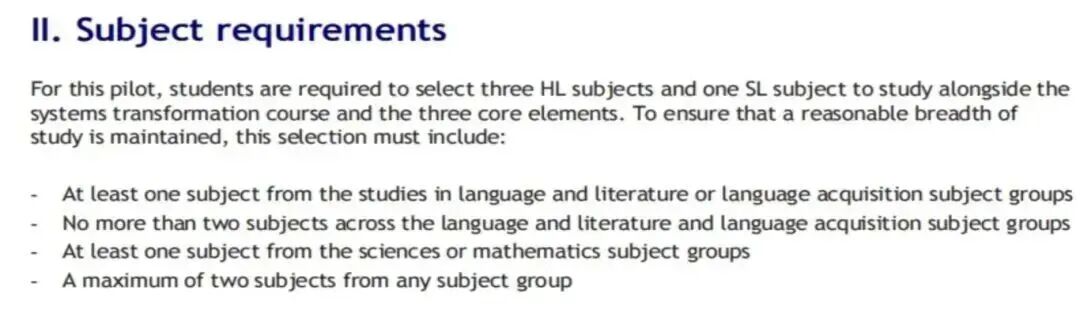 现在规则变了!学生只需要重点学习4门必修课就行,这4门课包括:3门主修(高阶课程HL) 和 1门辅修(标准课程SL)。