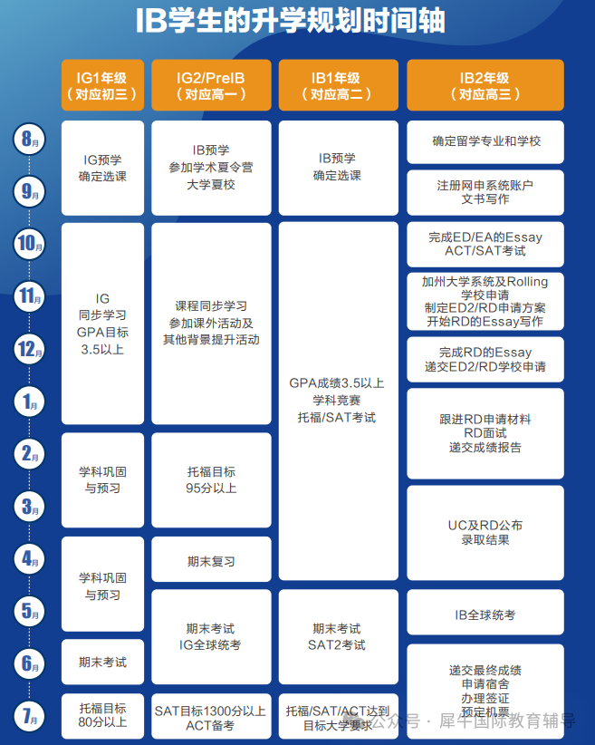 犀牛国际教育针对IB课程根据不同阶段备考的重点、难点、新规等,开设有IB预习课程,IB强化班,IB冲刺班等多个类型的IB培训课程。