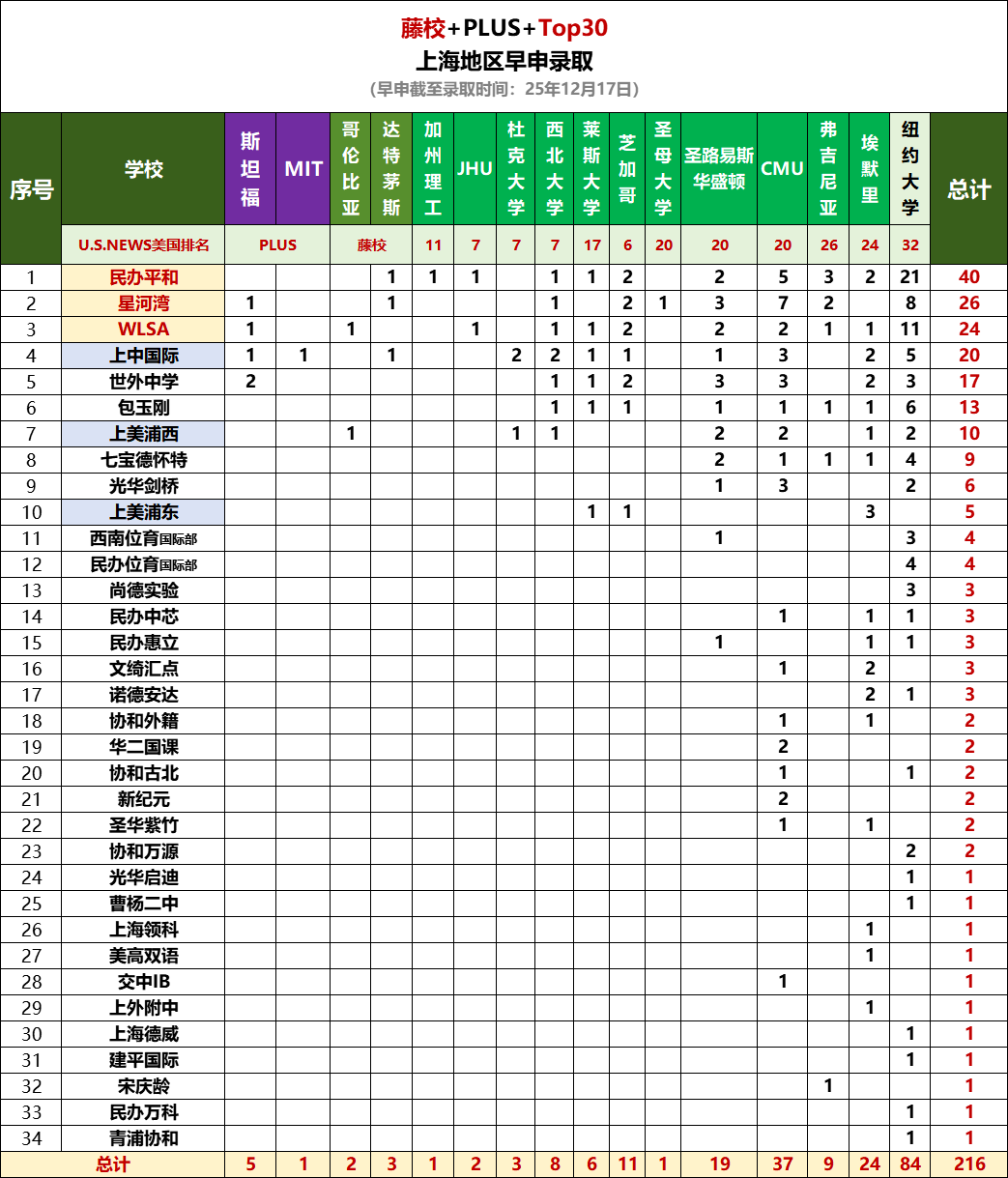 26年上海美本早申榜出炉:平和40枚断层第一!