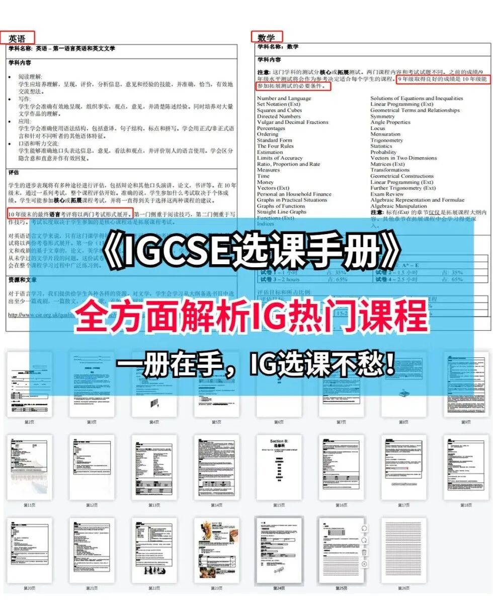 数学 IGCSE数学涵盖了从基础到高级的各种概念,包括方程、数列、函数、几何、三角学、向量、统计和概率等。IGCSE数学的考察内容相较于国内数学考察内容深度较浅,但是考察内容广泛【特别在向量和统计方面】
