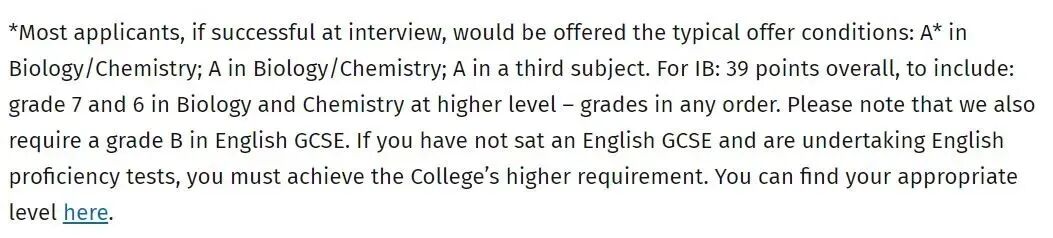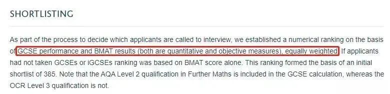 ▶医学专业的录取要求中明确显示,会根据申请者的BMAT笔试成绩和GCSE成绩来要求面试。