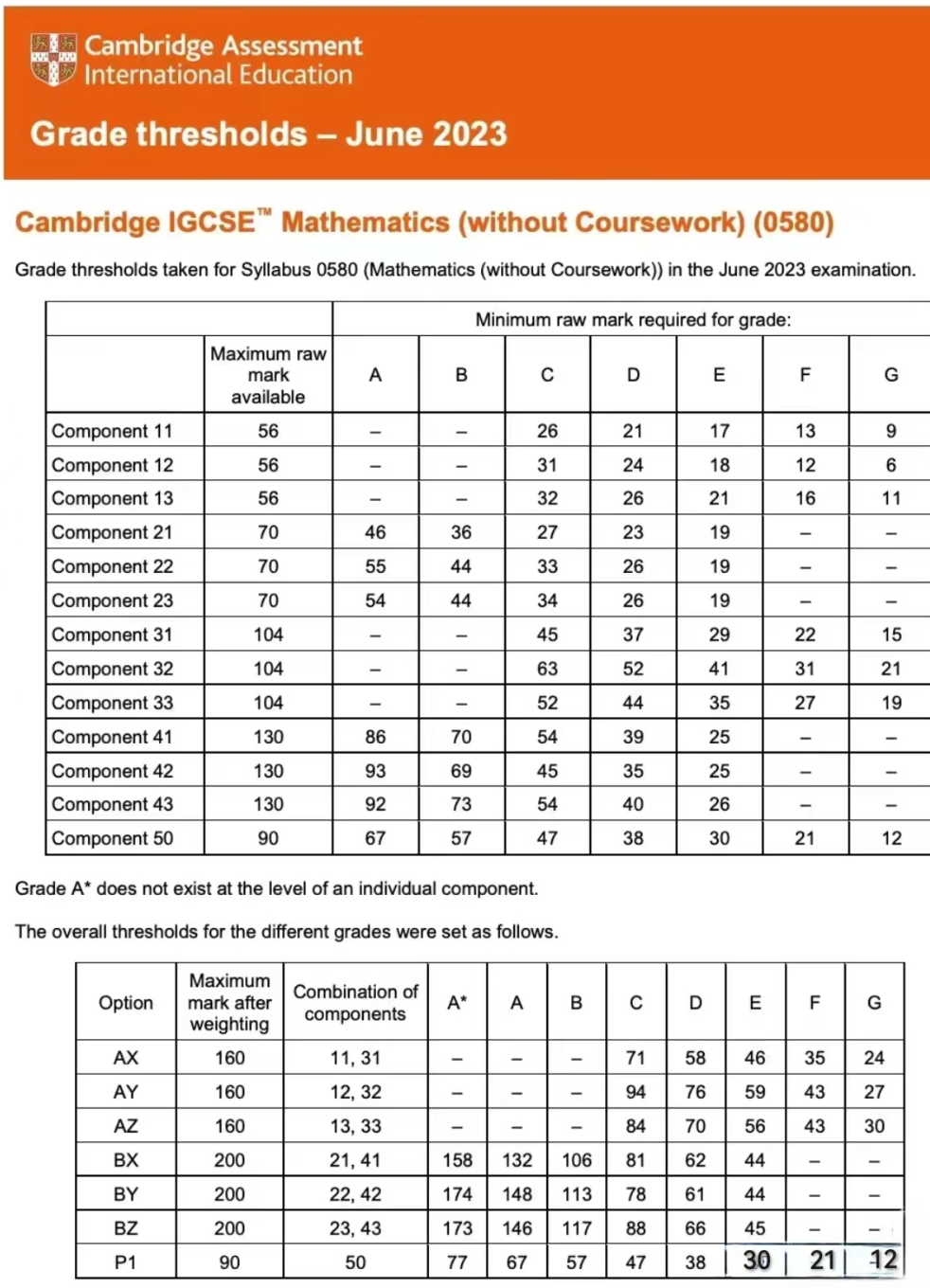 IGCSE数学A*的分数线为77-174分(2022年A*的分数线为76-159分),较去年确实有所上涨,随着考生综合实力的上涨,想要在IGCSE数学拿到A*的同学可千万不要掉以轻心,充足的备考才是拿分的关键!