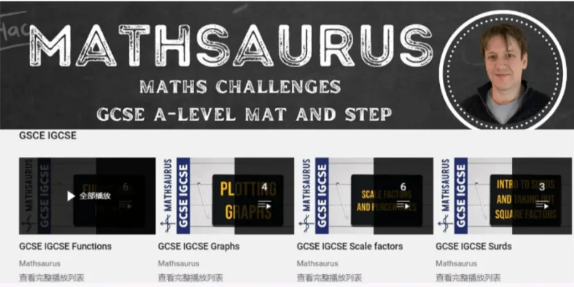该频道主要针对CAIE考试局的数学课程进行讲解,包括了IGCSE、GCSE和A-Level数学的所有课程内容。特别是基础的三角函数和复杂的A-Level函数,都有非常优质的讲解。