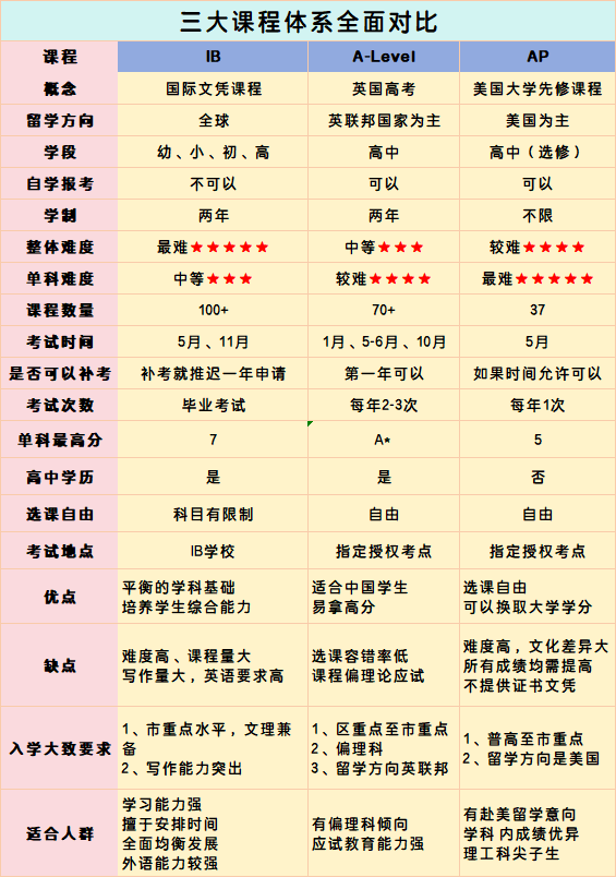 对于计划出国留学的学生和家长来说,面对IB、A-Level和AP这三大课程体系时,很多家长都会感到迷茫和困惑,往往不知道该如何选择。