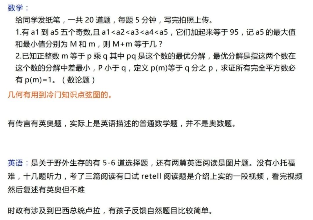 上实往年的机考和笔试两部分,上实要自带ipad 和耳机,老师给所有人发了纸和笔还有人没带 ipad,老师也给发了ipad。笔奥题也放在机考了,题目一共 27(类学)+67(语文英语和综合)=94题。今年老师发了纸和笔,全程可以动笔。答案大部分输入系统,有些手写拍照上传。