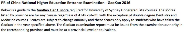 中国高中学生录取学术要求:高中毕业证书、高考成绩、雅思6.5分或托福