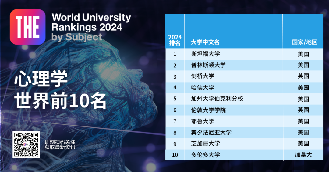 2024年泰晤士高等教育学科排名共考察11个广泛学科领域的表现,包含: