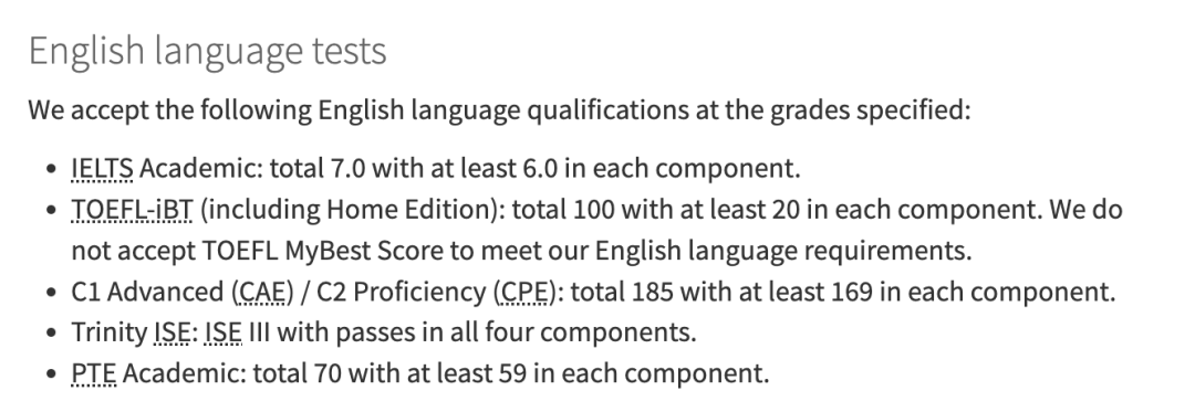 爱丁堡大学部分专业的雅思要求有所提高,从原来的总分7.0,单项不低于6.0调整为总分7.0,单项不低于6.5。