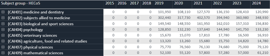 👉 根据UCAS的数据显示,2023-2024申请季较为热门的专业方向如下: