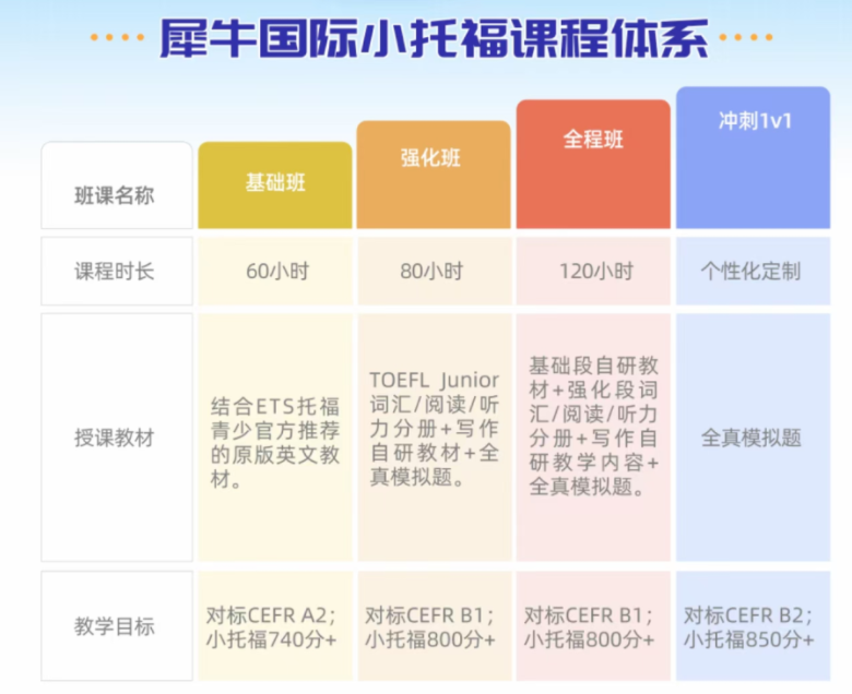 我们小托福课程包含小托福基础/强化/冲刺/全程班,课程内容涵盖听力、词法、辨音、阅读、写作、刷题演练等,3-6人小班教学/1V1辅导,线上线下同步授课,让每一位学员都能提到针对性的辅导。
