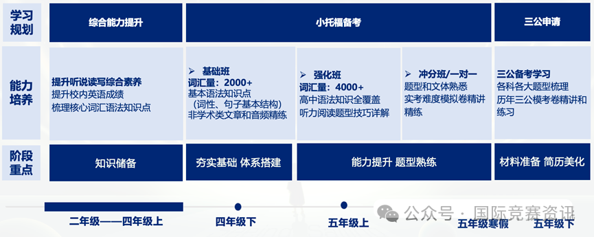 想要申请国际学校初中部的同学,建议在5-6年级就准备拿到高分,如果是通过插班入学,那就要在插班考试前高分拿下小托福成绩才有用。具体根据目标学校的插班招生时间安排,一般就是在学期末。