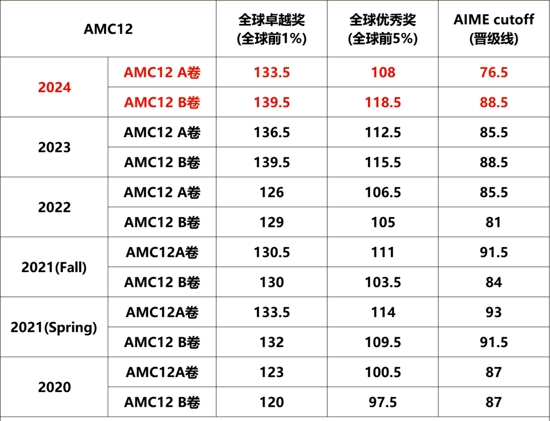 基于AMC10/12数学竞赛历年分数线的参考以及25年AMC10/12数学竞赛难度分析,对AIME晋级分数线做出如下预测: