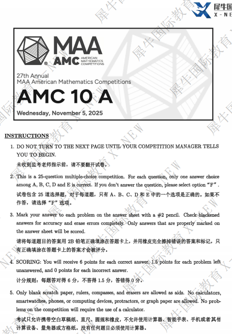 同时,AMC10竞赛成绩作为国际认可的数学能力证明,能为留学申请、国内自主招生加分,而历年真题备考资料,正是帮助学生斩获竞赛佳绩、提升自身竞争力的核心工具。通过系统练习真题,既能冲刺AMC10竞赛高分,又能夯实高中数学基础,实现竞赛与升学的双重突破,为未来的学习和发展增添优势。