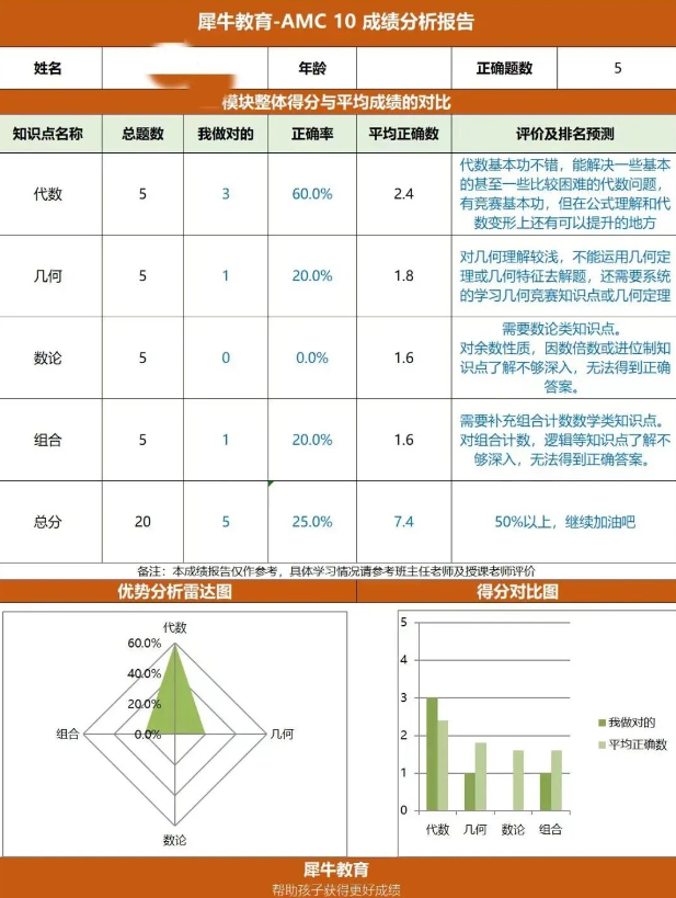 在入学前,犀牛AMC10数学竞赛培训课程为每位学员提供专业的水平测试卷,由资深规划老师进行一对一诊断分析。