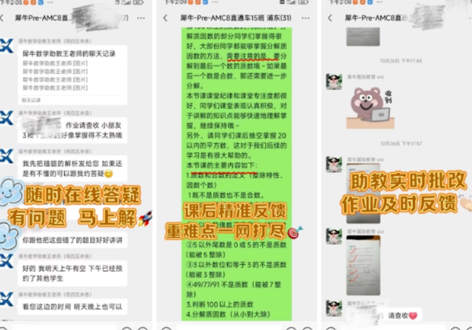 犀牛国际教育Pre-AMC8数学竞赛培训课程提供超越课堂的“全闭环”服务,确保每个环节都有支撑: