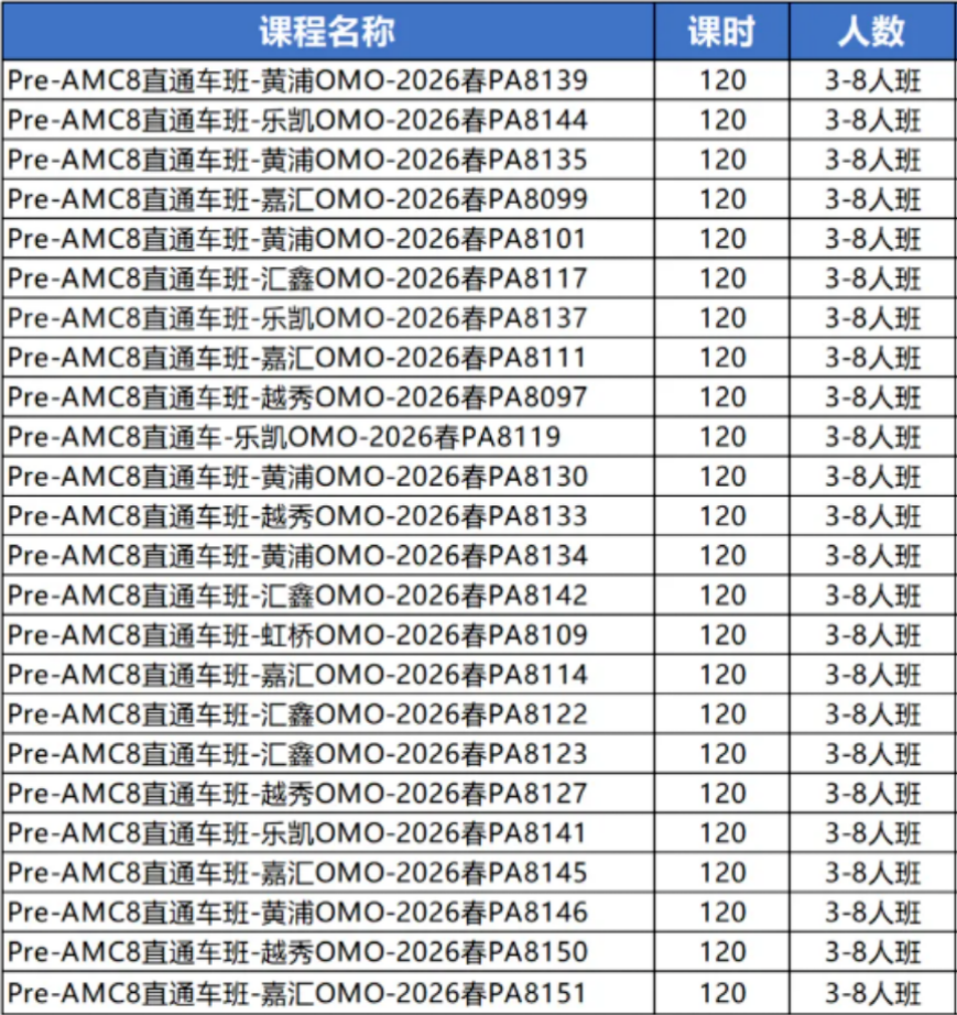 Pre-AMC8班:面向3-5年级、零基础学生,重点打好数学基础,培养竞赛思维模式;
