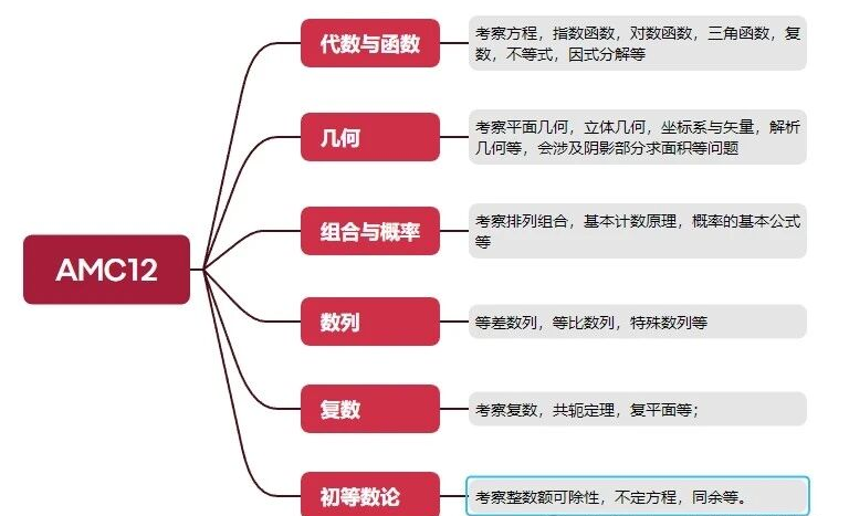 对AMC10来说,需重点掌握代数、几何、数论、组合的基础知识与公式;对AMC12来说,需要在AMC10基础上,增加三角函数、复数、对数、立体几何等内容。同时用思维导图梳理知识点,定期复习,形成完整体系。