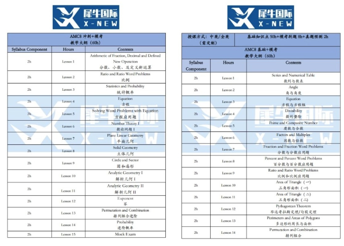 🔺犀牛AMC8数学竞赛培训课程-课表