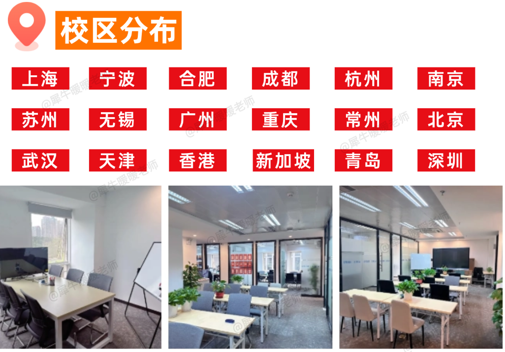 犀牛国际教育在全国多个主要城市设有线下校区,包括北京、上海、广州、深圳、南京、杭州、成都、武汉等地,方便学生就近选择线下学习。