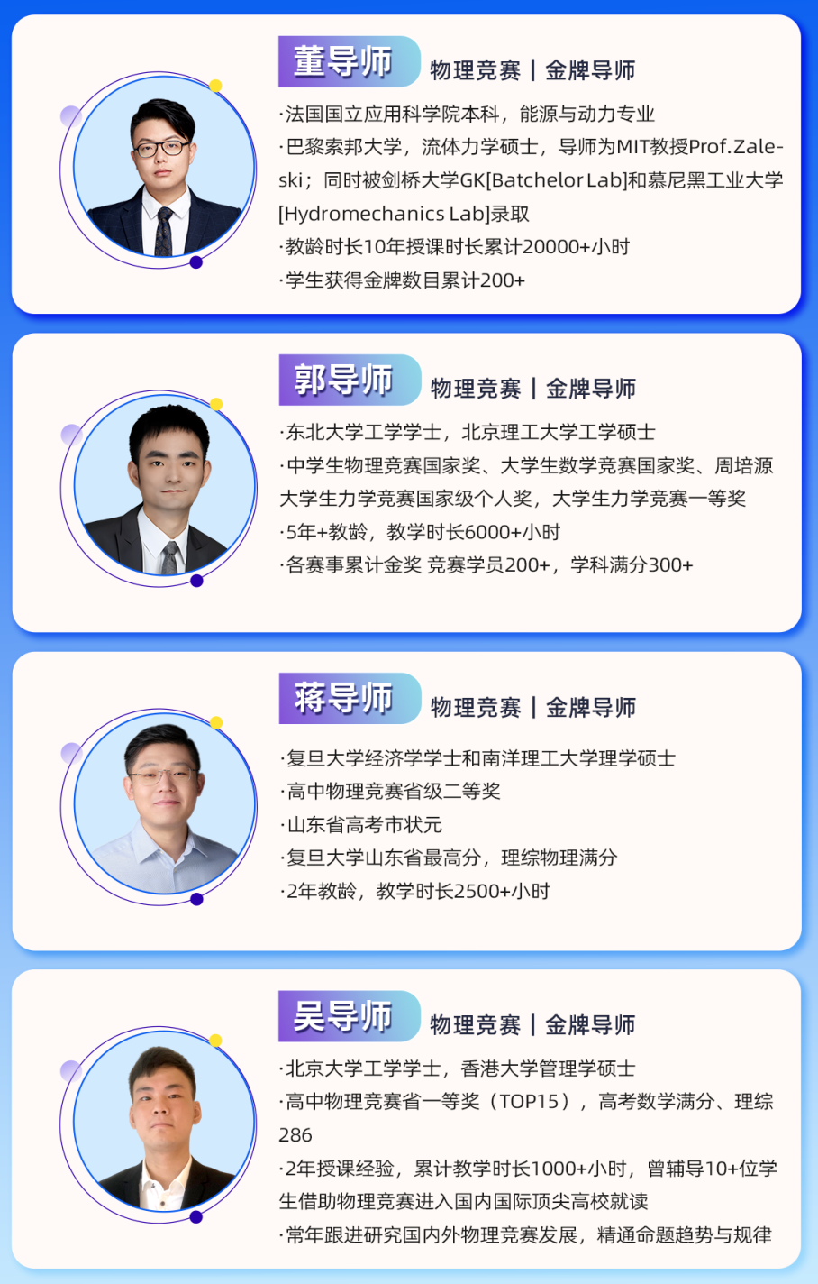 犀牛教育物理竞赛是由牛师带队辅导,巴黎索邦大学流体力学硕士,清华大学硕士授课,物理竞赛出身,教龄5年以上,物理竞赛辅导经验丰富。
