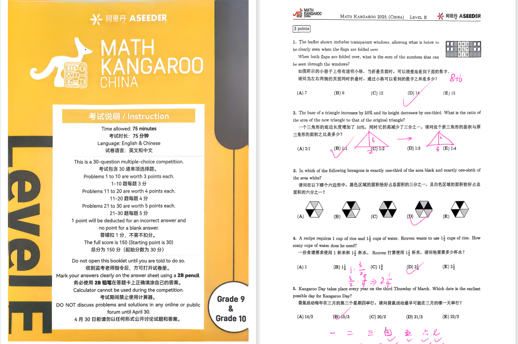 与传统数学竞赛不同,袋鼠数学竞赛的题目以趣味性和实践性为主,更贴近生活,能激发孩子对数学的兴趣。
