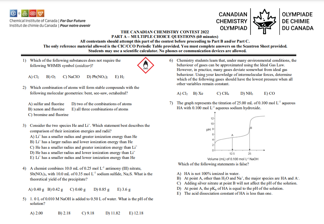 同时,CCC加拿大化学竞赛也是加拿大化学奥林匹克的全国预选赛,成绩优秀者可以获邀进入加拿大化学奥林匹克全国决赛。