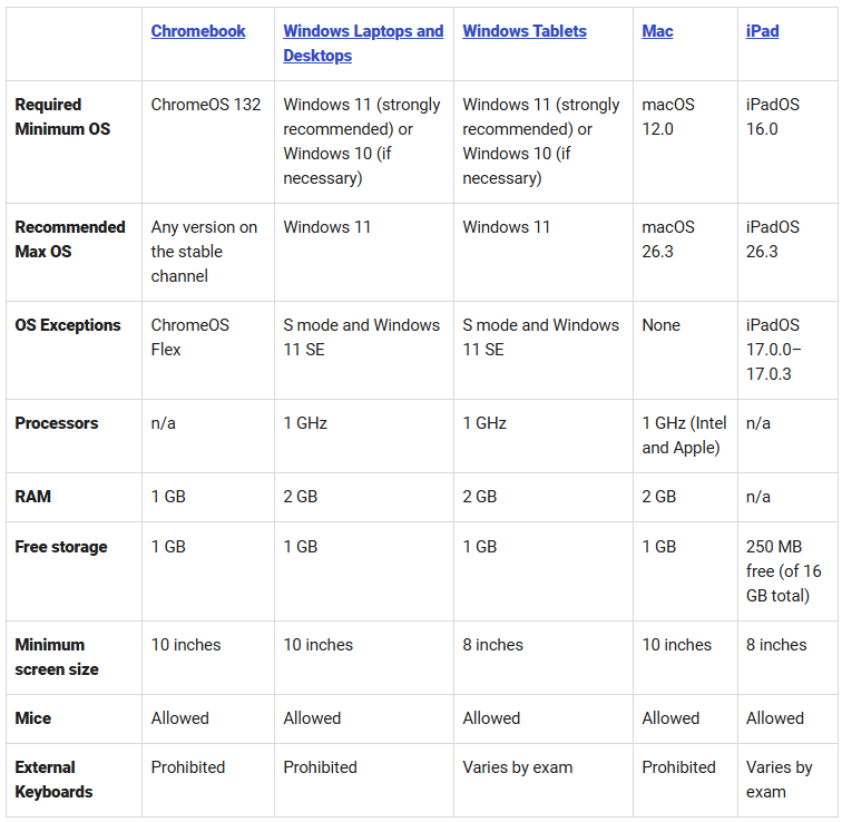 注意:考生须于考试前一天完成Bluebook登录、更新检查及次日科目核对;可以携带多个符合要求的考试设备(及电源线)、充电宝;牢记College Board账号和密码。