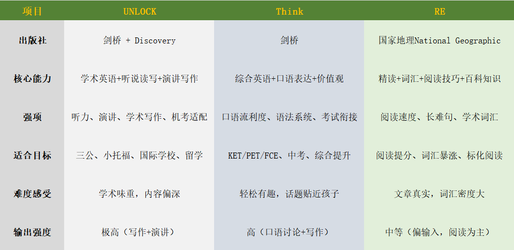 想综合提升、口语变好、走剑桥考级:选 Think。课堂轻松,孩子愿意学,进步稳定。